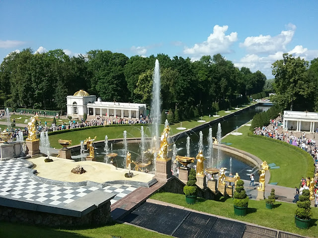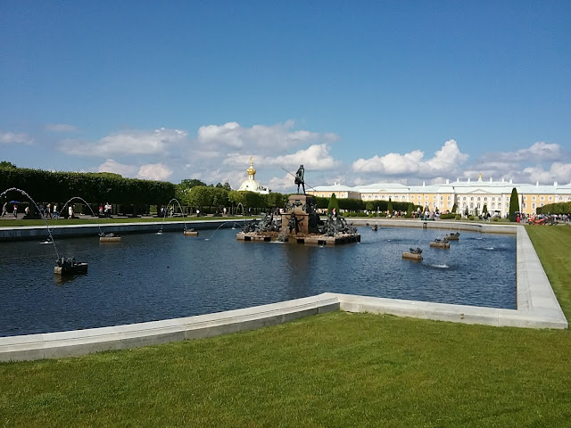 Нам действительно повезло с погодой. Долго стояли в ожидании в очереди, чтобы посетить помпезный Екатерининский дворец. Было время и для небольшой прогулки по парку. Впечатления увезем вместе с Фотографиями, сделанными на планшетку и айфон.