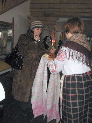 По традиции нас встречали с хлебом и солью.А затем мы были приглашены на приветственный кофе-брейк в павильон Латинской Америки